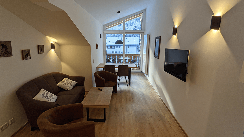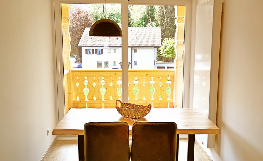 Die Ferienwohnung „Alpspitze“ im zweiten Obergeschoss bietet Komfort für bis zu vier Personen in einem gemütlichen Ambiente und imposanten Blick auf die umliegenden Berge. Neben dem Wohnbereich erwarten Sie zwei Schlafzimmer, ein geräumiges Bad/Dusche mit WC. Das Highlight unserer Ferienwohnung: Gleich zwei Balkone an der Ost- und Südseite mit faszinierender Aussicht. Der Bergblick unseres neu errichteten Seitengiebels sucht seinesgleichen!